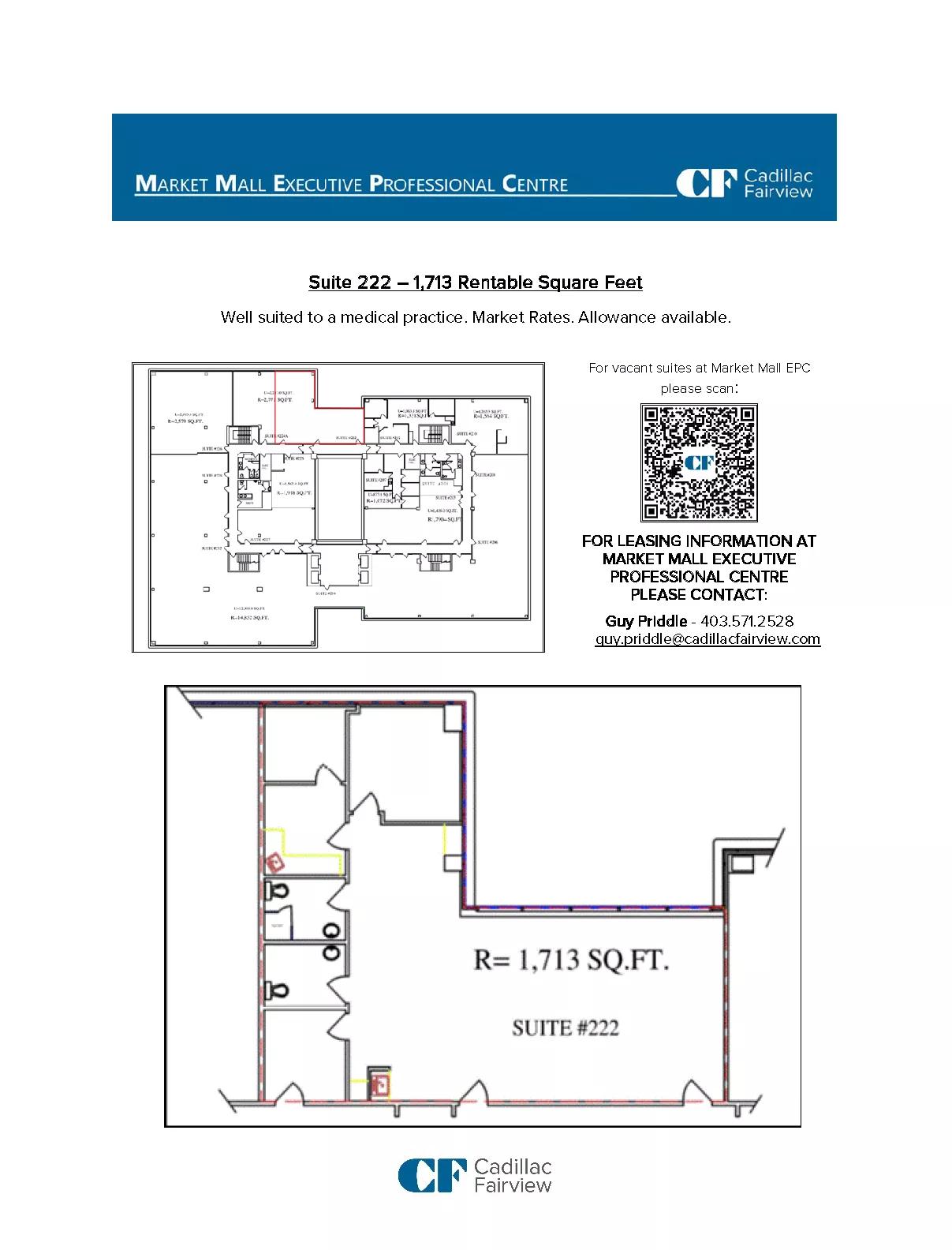 | Market Mall Executive Professional Centre | 222 | 1,713 | Immediately | Space for immediate fixturing | |||||