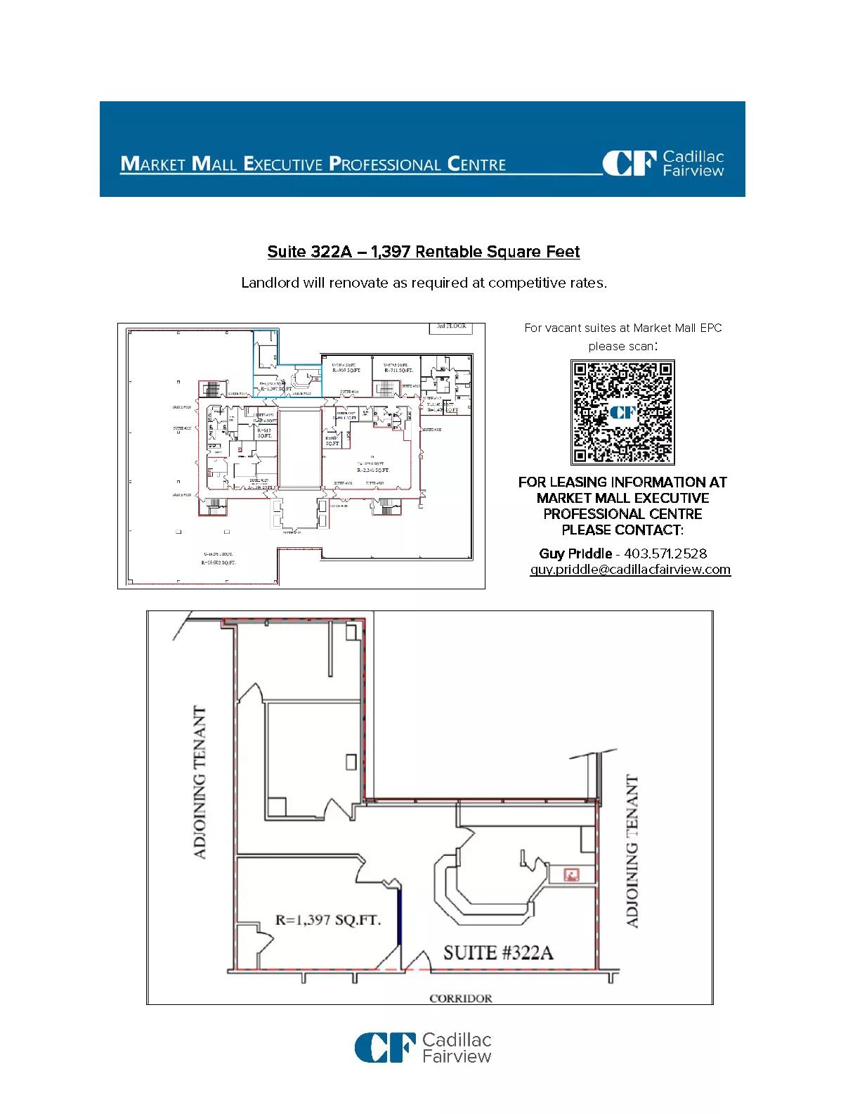 | Market Mall Executive Professional Centre | 322A | 1,397 | Immediately | Space for immediate fixturing | |||||