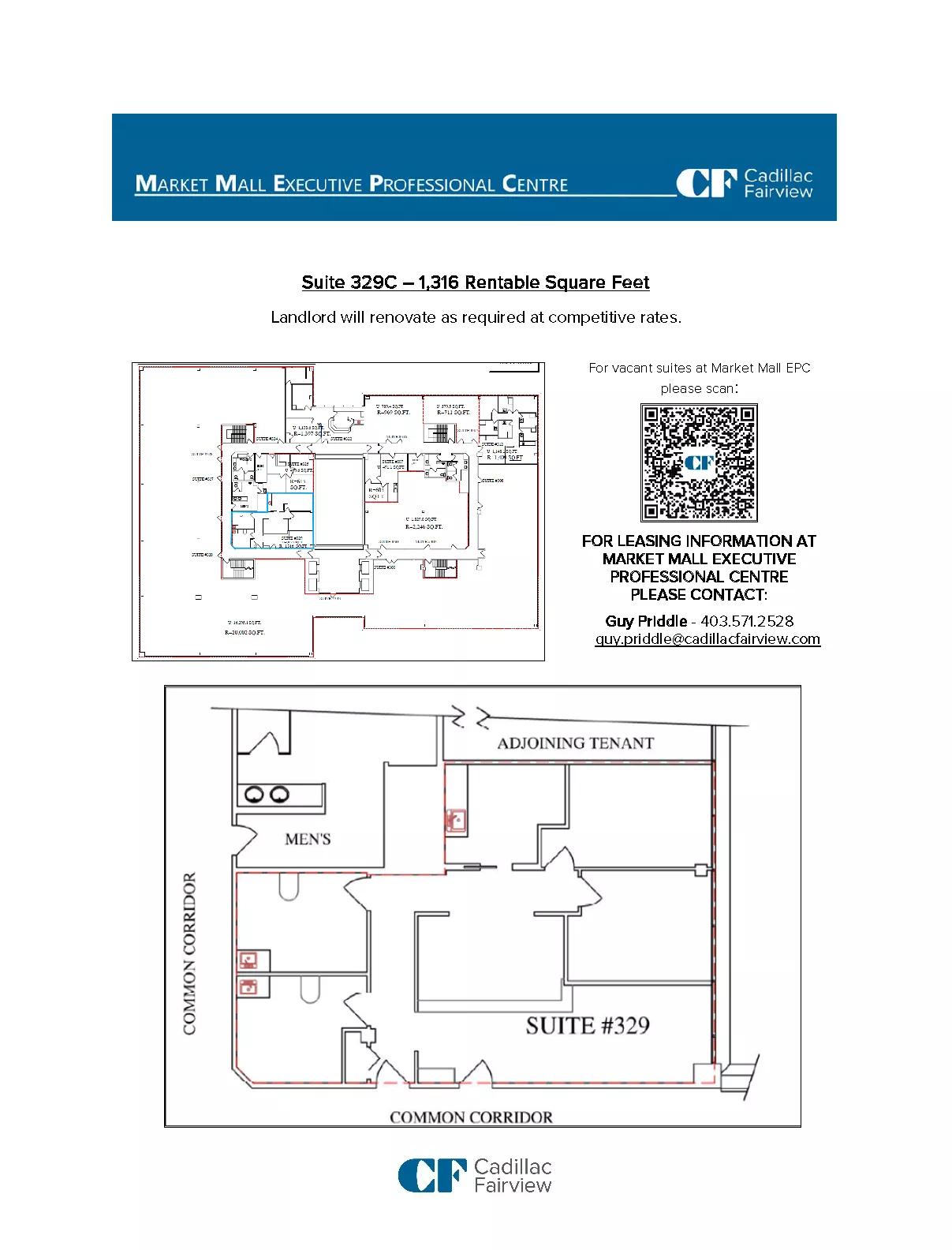 | Market Mall Executive Professional Centre | 329C | 1,316 | Immediately | Space for immediate fixturing | |||||